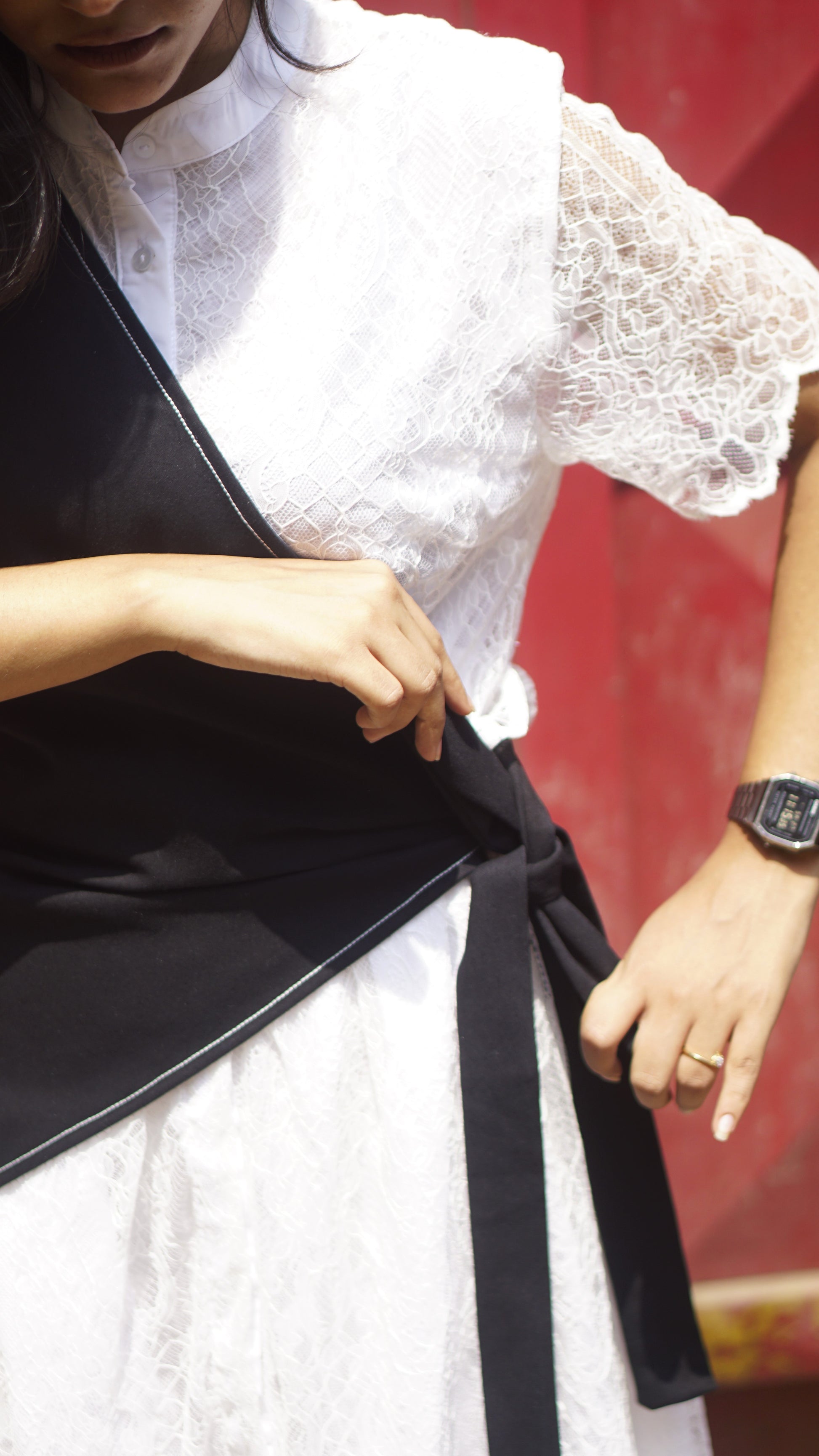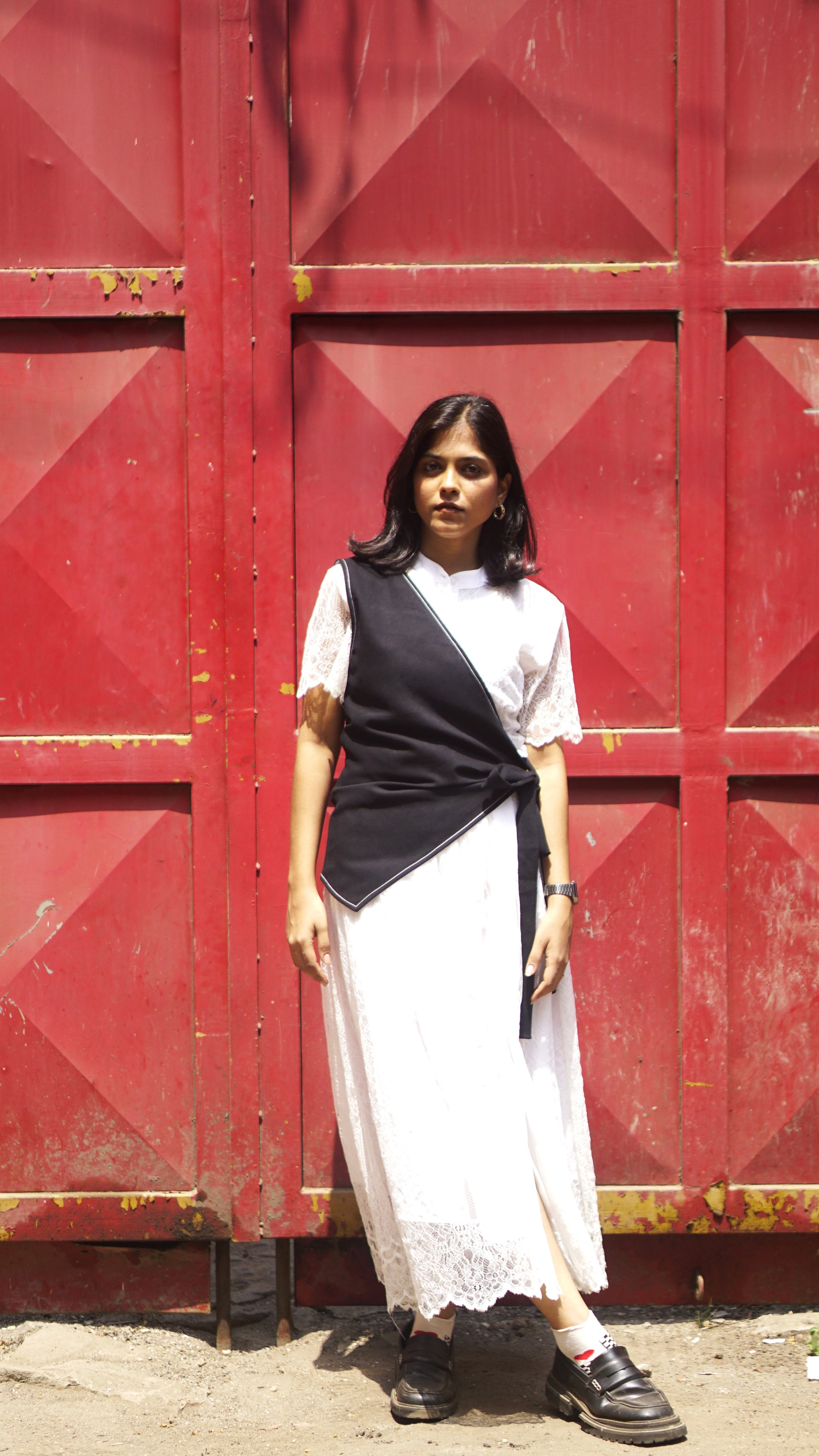 The One-Shoulder Jacket is that perfect finishing touch — like a drizzle of truffle oil on pasta or a sprinkle of podi on idlis. Instantly mood-lifting, it’s not just an addition to your wardrobe; it’s the piece that makes everything feel complete. Never an afterthought — always the statement.