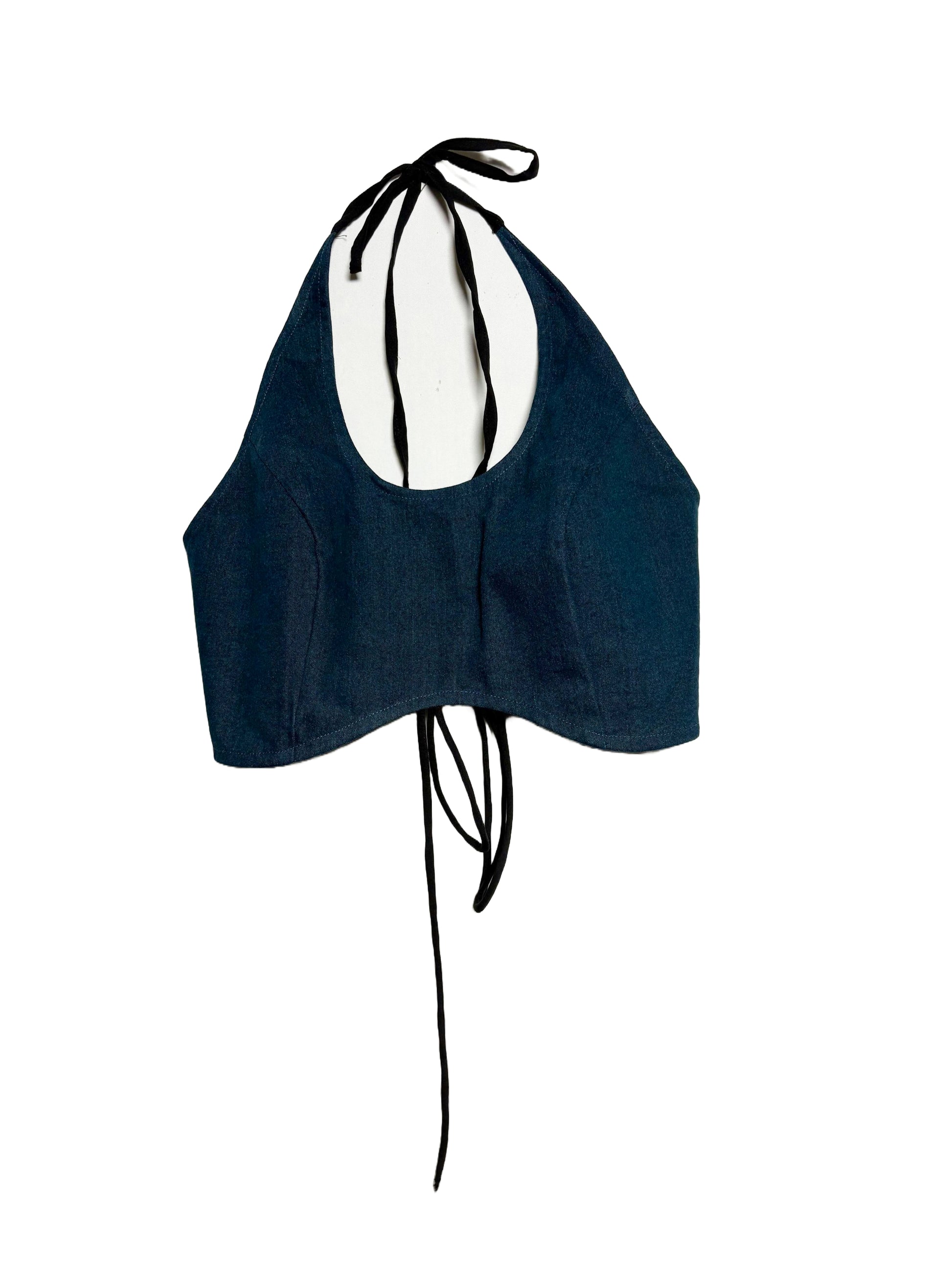 Designed to hug your body in all the right ways, the Amore Crop Top offers a flattering fit like no other. Crafted from soft stretch denim, it features a chic halter neckline and an adjustable back tie-up for a custom fit. Whether you're headed to a laid-back beach day or a casual coffee with your friends, this top brings effortless style and comfort—every time.