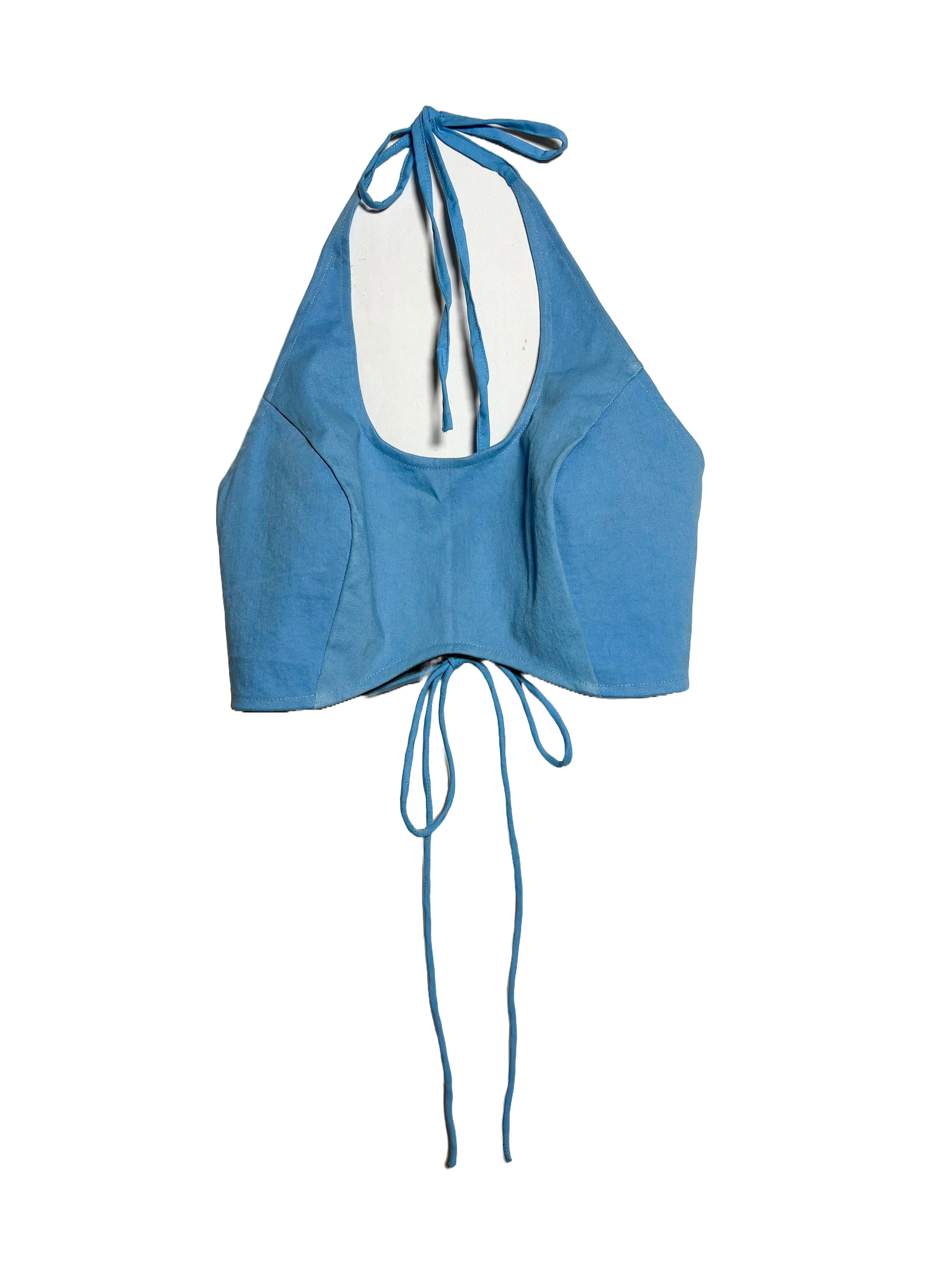 Designed to hug your body in all the right ways, the Amore Crop Top offers a flattering fit like no other. Crafted from soft stretch denim, it features a chic halter neckline and an adjustable back tie-up for a custom fit. Whether you're headed to a laid-back beach day or a casual coffee with your friends, this top brings effortless style and comfort—every time.