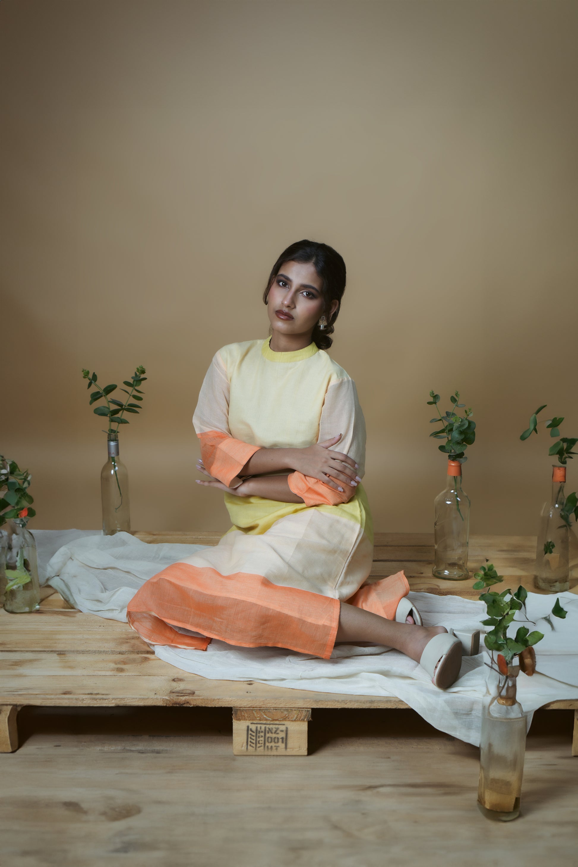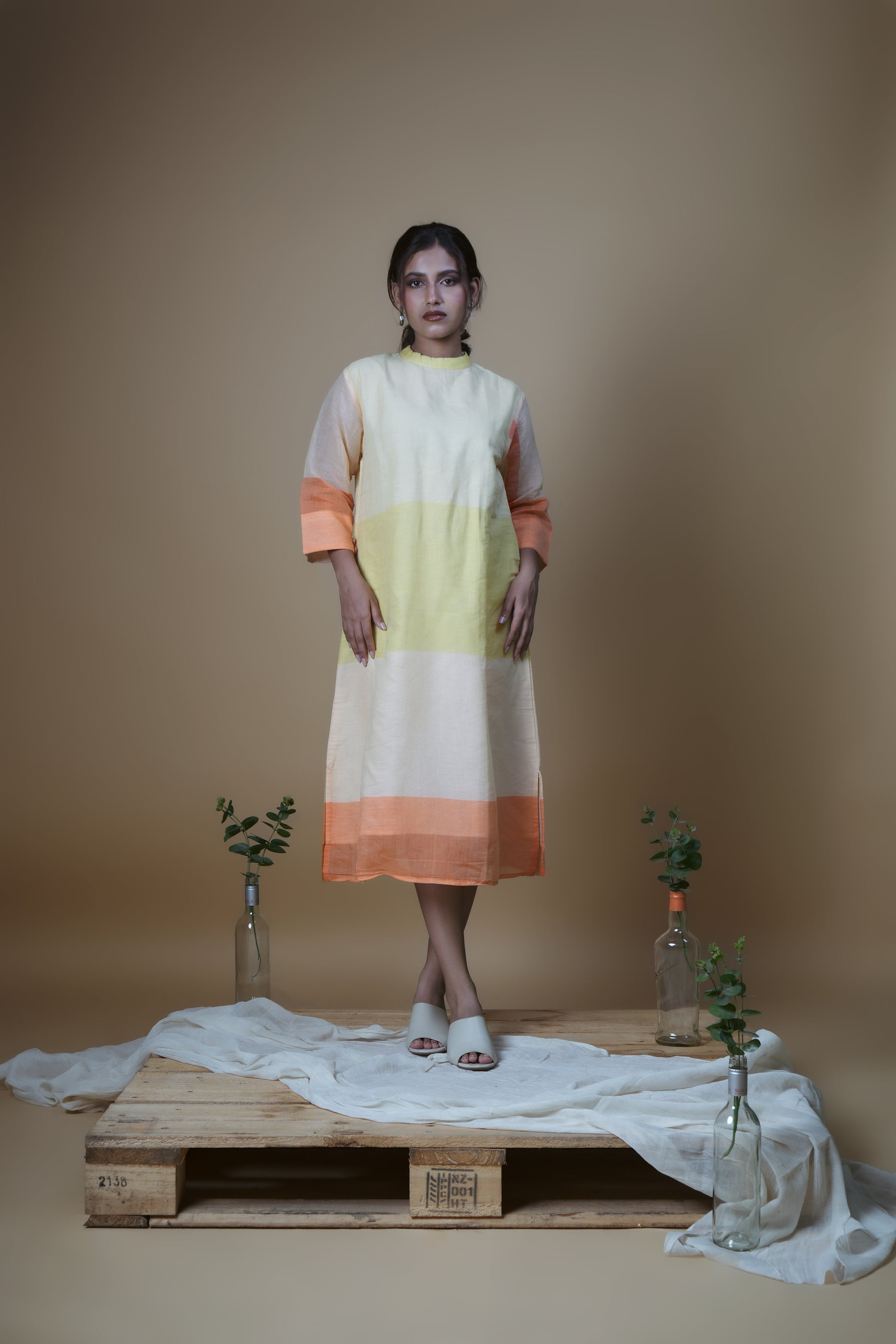 Straight-fit dress with high-neck collar. Wearable both as a kurta and dress.