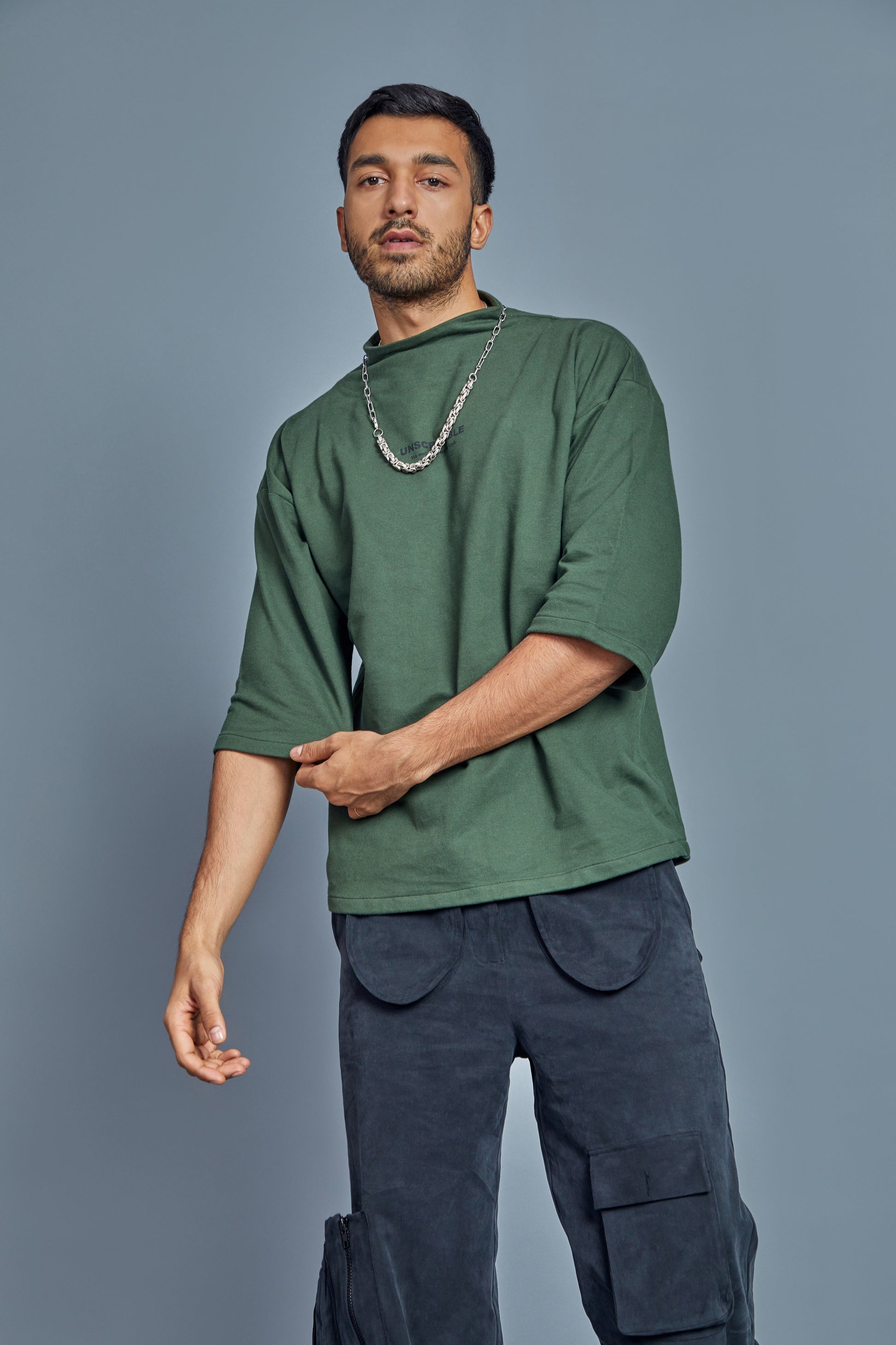 Unscramble printed on the chest of the high neck t shirt. With drop shoulders that intensifying the look of your complete attire