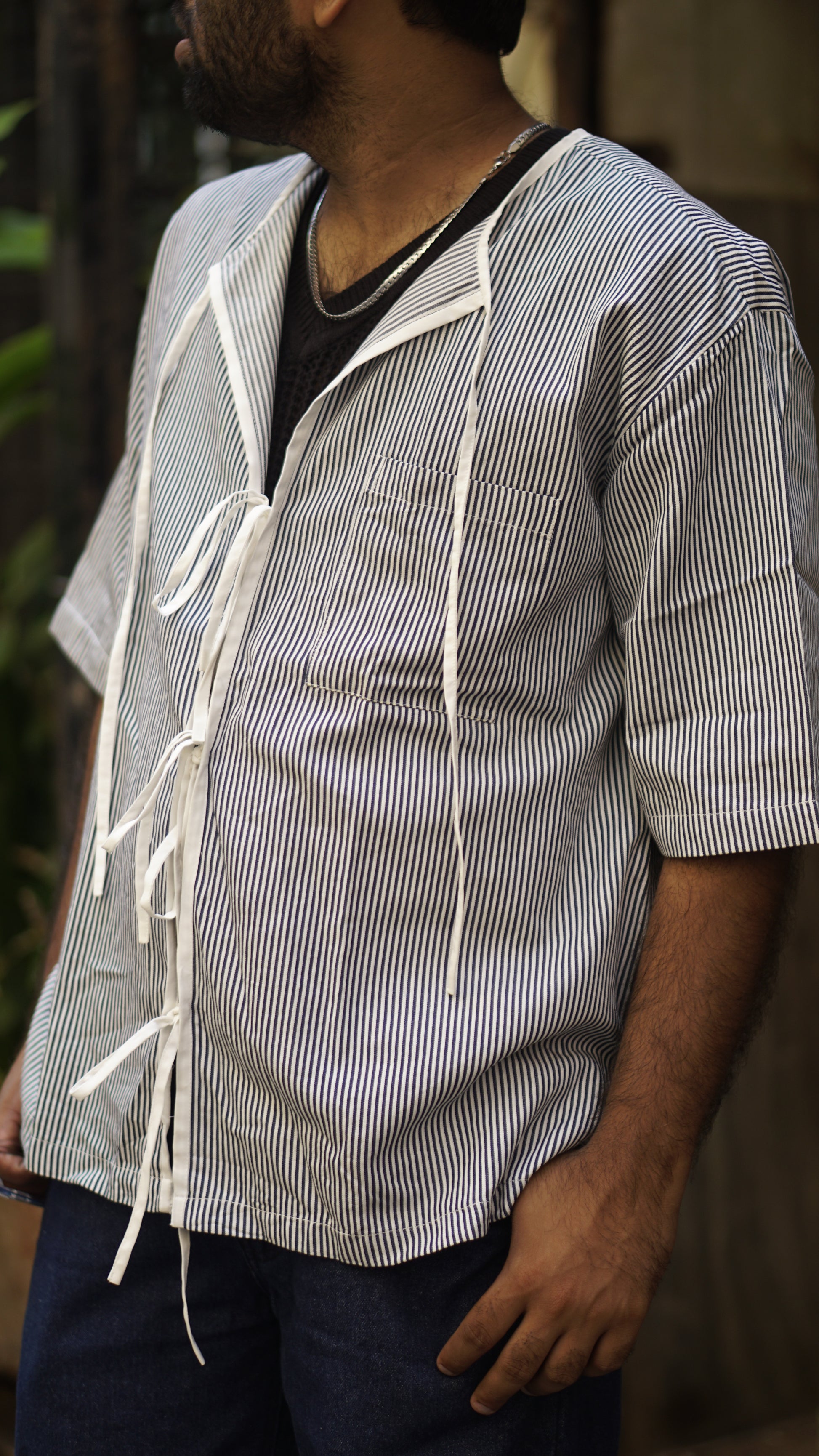 A playful twist on the classic shirt, the Float Buttonless Shirt is all about easy style and comfort. Made from upcycled Tencel, it has tie-ups in place of buttons and a relaxed silhouette that can be worn on it's own or layered. Lightweight, breathable, and effortlessly cool—this piece is perfect for long days when comfort is the statement.