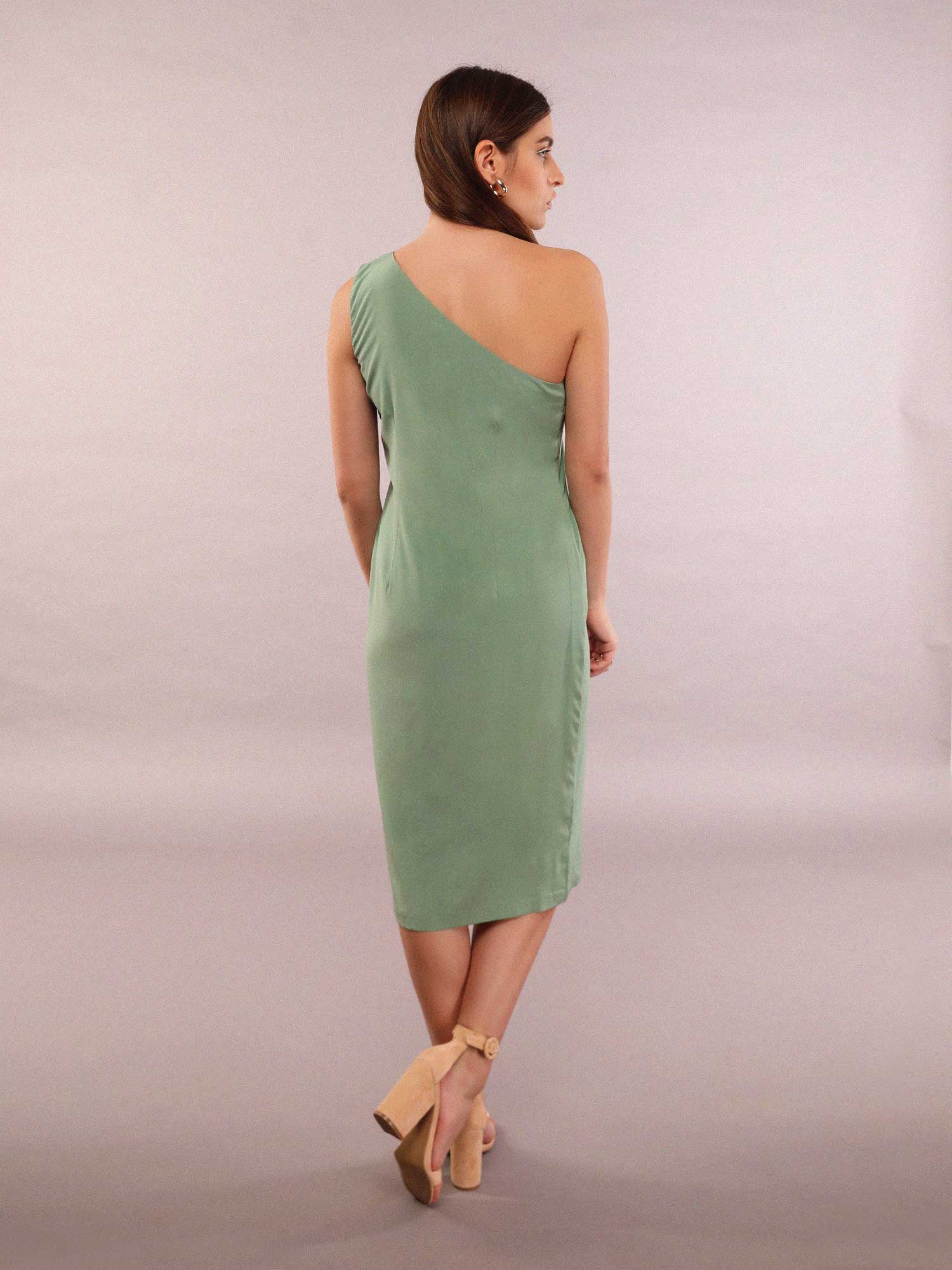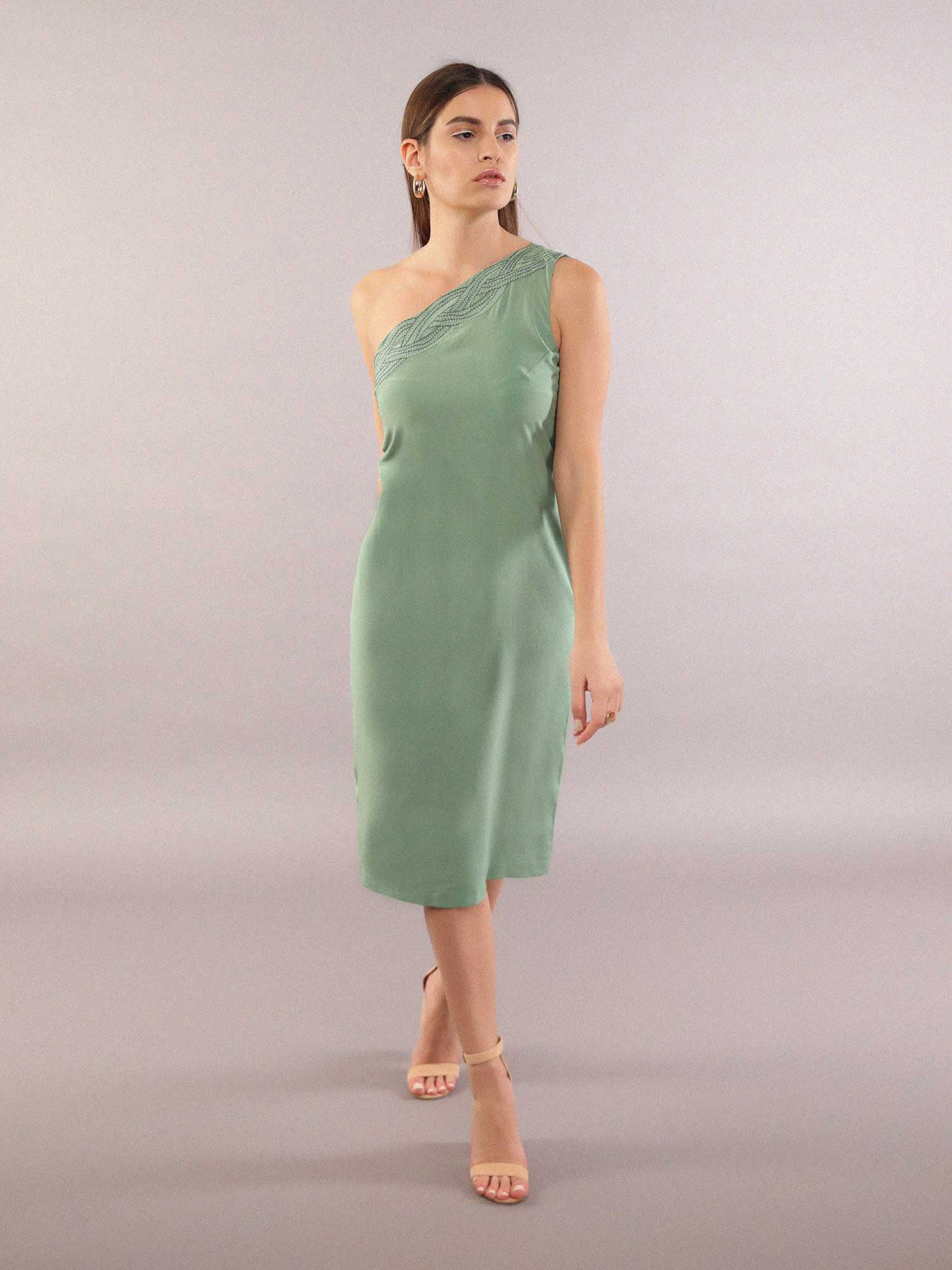 Crafted in silk crepe and embellished with embroidery our one shoulder midi is perfect for a lunch outing and can be dressed up for dinner party.